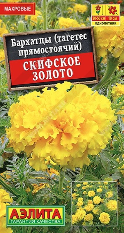 Один из лучших сортов бархатцев раннего срока цветения. Высота* растений достигает 30-50 см. Кусты крепкие, плотные, хорошо ветвятся и отличаются густой облиственностью побегов. Соцветия объемные, махровые, ? 9-10 см, сохраняют яркость и аккуратную форму под воздействием капризов погодных условий. Сорт используется для групповых и одиночных посадок в разнообразных садовых цветниках, для срезки и украшения крупных вазонов.