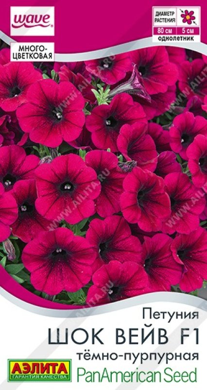 Роскошный ампельный гибрид многоцветковой петунии американской селекции из знаменитого семейства «Wave». Славится самым ранним цветением среди ампелей, иммунитетом к мучнистой росе и большой устойчивостью к дождю, ветру, засухе. Цветение обильное – море цветков диаметром 4-5 см полностью скрывает листву. Растение не оголяется по центру, стабильно держит цветущую «корону» до конца сезона. В открытом грунте высота кустиков составляет 20-25 см, ширина достигает 50-80 см. Гибрид неотразим в кашпо, украсит высокие вазоны.