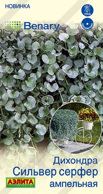 Дихондра – великолепная ампельная культура. Селекционная работа позволила создать улучшенный сорт с мощной корневой системой, которая позволяет максимально быстро получить высокодекоративные растения, устойчивые к жаре и засухе. Каждый побег покрыт огромным количеством нежных серебристых листочков. При выращивании в цветниках средней полосы культура выступает в роли почвопокровного однолетника. Высота составляет около 8-10 см, а диаметр более 25-30 см. В подвесных кашпо и крупных декоративных контейнерах длина побегов взрослой дихондры может достигать 1,5 м. Сорт подходит для каменистых садов и подпорных стенок. Используется для озеленения интерьеров, в том числе для создания фитостен.
