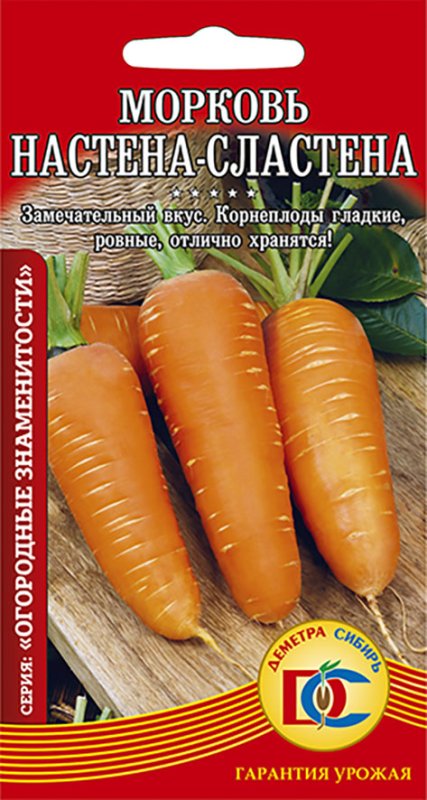 Замечательный среднеспелый (100-115 дней) сорт, сортотипа Шантенэ. Корнеплоды крупные, массой 150-250 г, с небольшой сердцевиной, не растрескиваются и не деформируются. Мякоть плотная, сладкая, сочная и ароматная. Отлично хранятся до нового урожая, сохраняя прекрасный вкус и замечательный внешний вид. Сорт устойчив к цветушности, к жаркой погоде и комплексу болезней культуры.