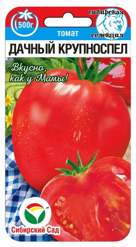 Раннеспелый (110 дней) низкорослый, очень урожайный сорт селекции АФ «Сибирский сад». Со второй половины июля дружно отдает урожай крупных, средним весом 500 граммов, плодов с замечательным вкусом настоящих сибирских томатов. Мякоть сахаристая, малосемянная. Сорт может выращиваться в открытом и защищенном грунте, нетребователен к уходу, пасынкуется до 1 цветочной кисти. Растение детерминантное, высотой 1-1,2 м в зависимости от способа выращивания.